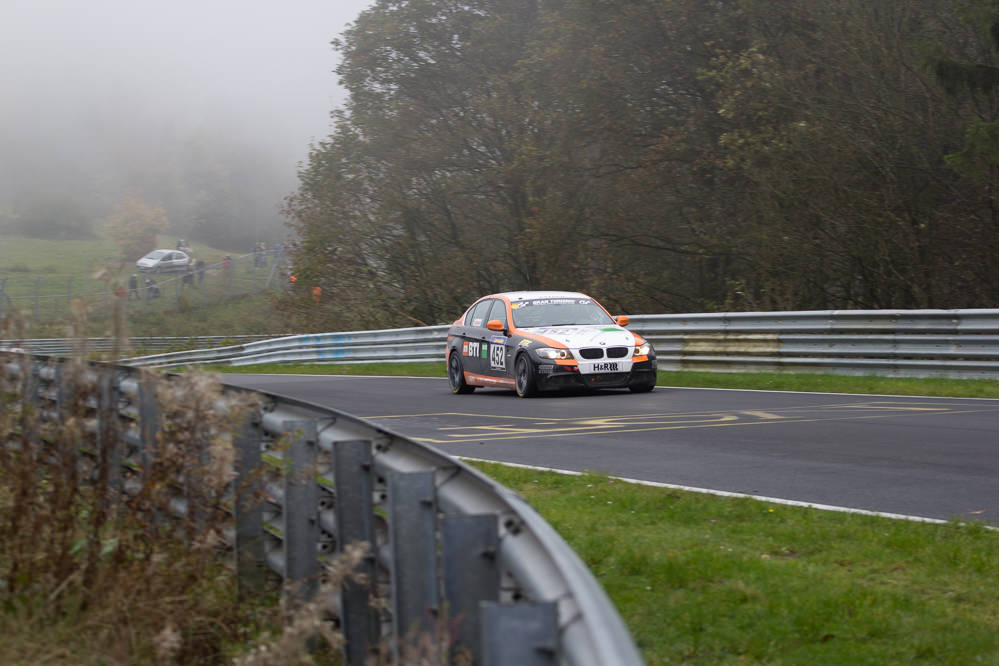 Schon während des morgendlichen Zeittrainings wurde der Grundstein für den späteren Erfolg gelegt. Regen, Nebel und kalte Temperaturen sorgten für schwierige Bedingungen auf der rund 25 Kilometer langen Rennstrecke durch die Eifel. Das Fahrertrio rund um Andreas Herwerth kam damit jedoch bestens zurecht und stellte den BMW 330i auf die Poleposition in der Klasse V5.