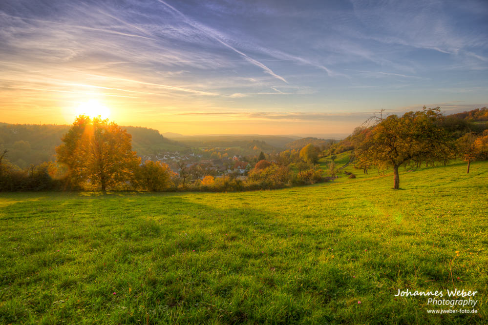 Nach einem ungewöhnlich warmen Oktober beginnt auch der November mit perfektem Wetter am ersten Wochenende. Der Herbst zeigt im Moment seine ganze Pracht – die Landschaft rund um Oberheimbach ist in warme Rottöne getaucht. Vom Galgenberg aus hat man einen guten Ausblick über Oberheimbach hinweg in Richtung Hohenloher Ebene und Heilbronn.